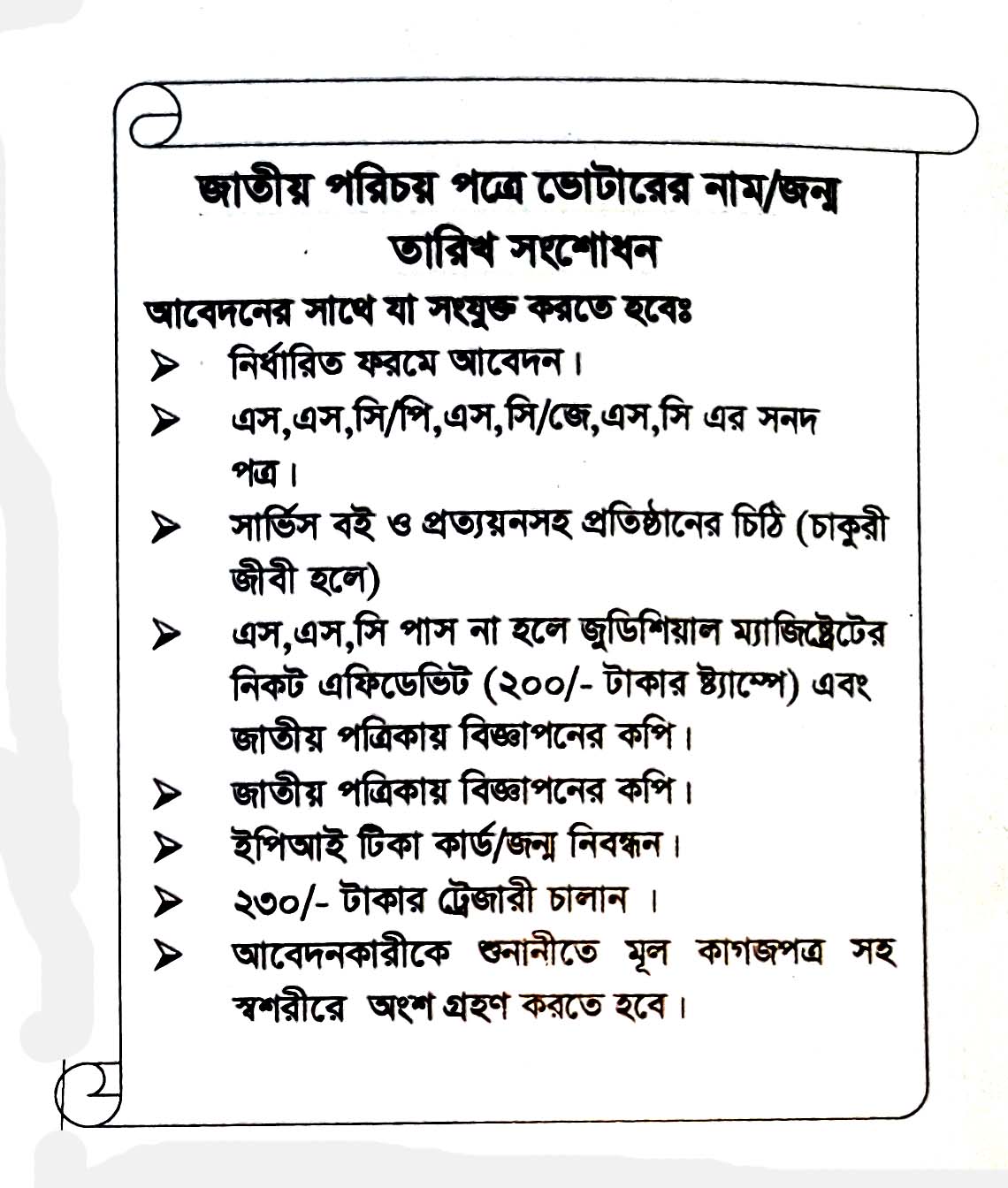 জাতীয় পরিচয়পত্রে ভোটারের নাম ও জন্ম তারিখ সংশোধন